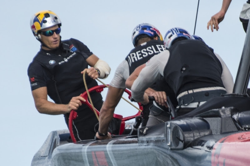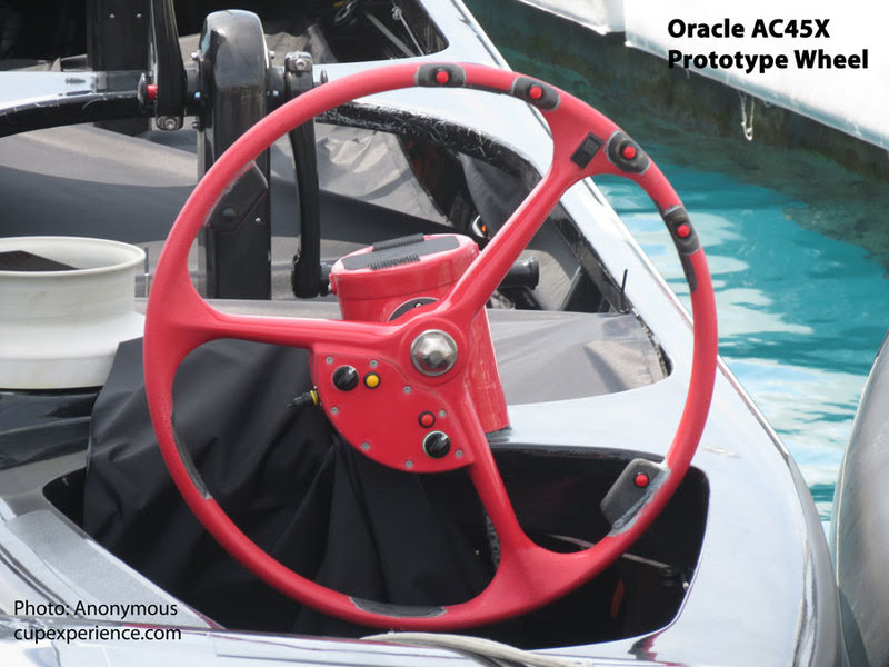 At the Detroit Motor Show, BMW Management Board member Ian Robertson presented a steering wheel, designed by the BMW Motorsport group, to Jimmy Spithill. This wheel has twist grip controls, like on a motorcycle (or, in Bermuda, on a scooter).
