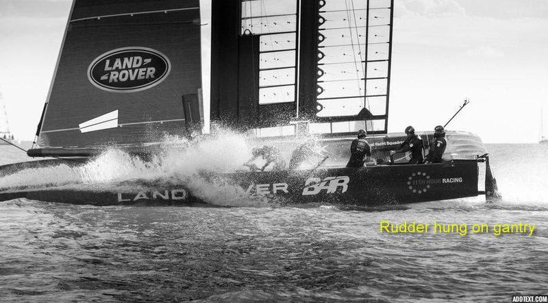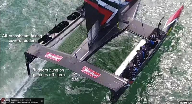 Land Rover BAR and Emirates Team New Zealand wanted to test the geometry of the slightly longer AC Class race boat, so they built special rudders that could be hung on gantries off the stern.